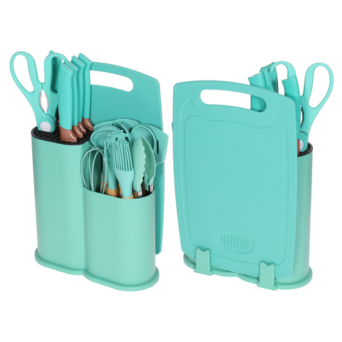 Juego de cuchillos de cocina de acero inoxidable de 19 piezas de fábrica al por mayor, utensilio de silicona y bloque de corte de cuchillos de cocina con caja de regalo